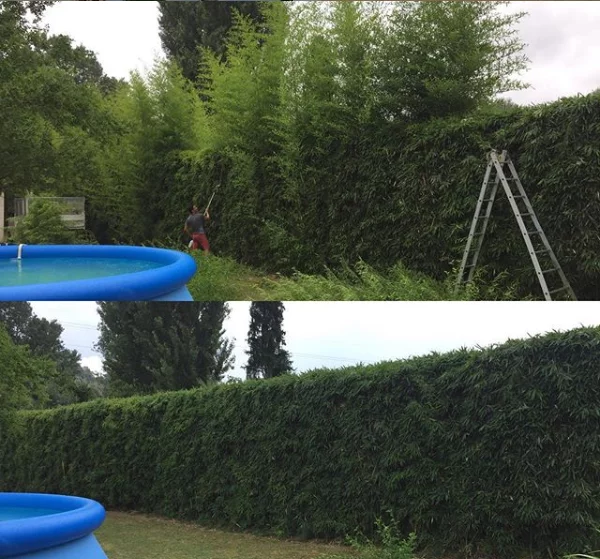 - Taille de toutes essences de haies : laurier, cyprès, photinia, troène, bambou, etc.